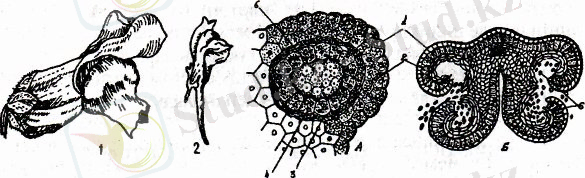 зінің қалталанып ісініуі; 2-сиякөк- тозаңқап; 1-эпидерма, 2-эңдотеций