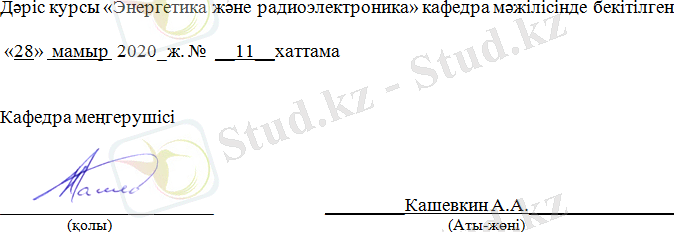Дәріс курсы «Энергетика және радиоэлектроника» кафедра мәжілісінде бекітілген