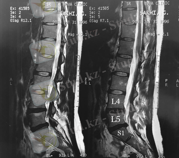 4-сурет. L4-L5 дискілерінің протрузиясы-3, 6 мм және L5-S1 дискілерінің жарығы-6 мм.