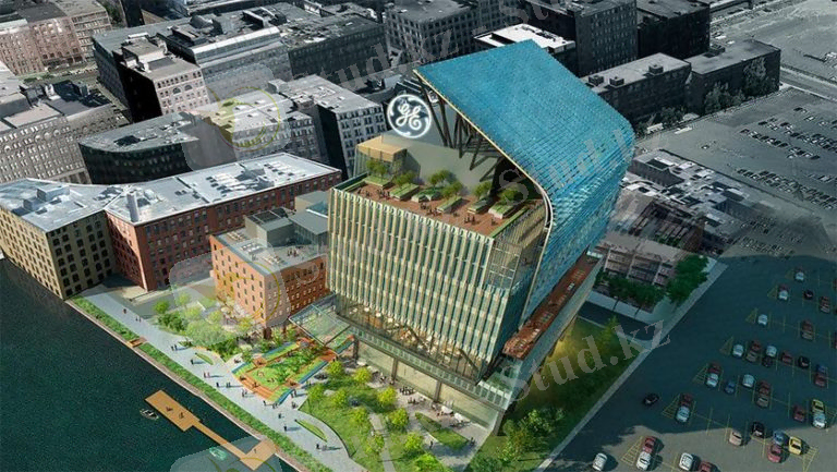 Бостондағы Форт Пойнт каналына қарайтын GE компаниясының жаңа штаб-пәтерінде нағыз күн сәулесі шабыны бар . Бостон журналының мәліметі бойынша, жабын "күн сәулесін фотогальваникалық беттерге шығаратын күн ламелаларынан тұрады". Сонымен қатар, ескі қоймалардың айналасында ағаштар отырғызылады. Сондай-ақ, Компания жеке көліктен бас тартатын, велосипедпен жүретін қызметкерлерді ынталандыруға ниетті. 2018 жылы құрылыс аяқталғаннан кейін GE штаб-пәтері АҚШ-тағы ең жасыл ғимараттардың бірі ретінде сертификатталады деп күтілуде.