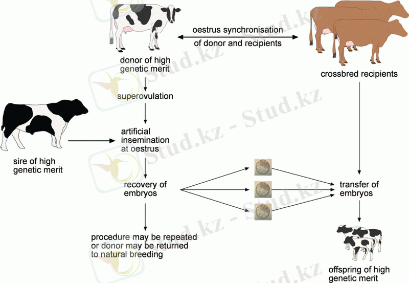 Сиырлар мен сиырларды эмбриондарды трансплантациялау үшін ветеринариялық емдеуден кейін оларды тек 3 аптадан кейін қолдануға болады. Әрбір донорға 5-6 реципиент дайындау керек.