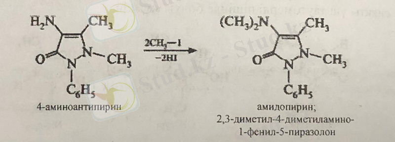 4-аминоантипиринді метилдеу арқылы амидопиринді алады.