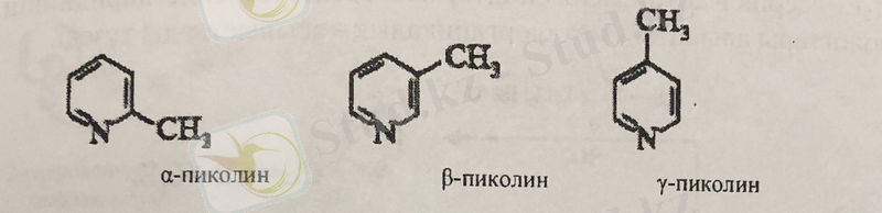 Пиридиннің монометилді туындыларын пиколиндер деп атаймыз. Пиколиндер орналасуына байланысты: