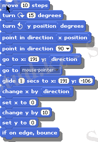 - Компьютерлік ойын, Scratch тілінің пәрмендерінің тізімі.