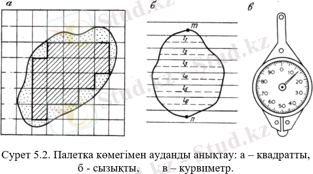 Берілген бөліктің ауданын анықтау үшін палетканы 45° бұрып қайта өлшеу жүргізіледі. Ауданды анықтаудың салыстырмалы қателігі 1: 50, 1: 100 құрайды.