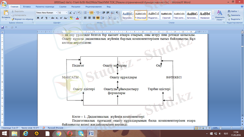 Сурет 1. Дидактикалық жүйенің компоненттері