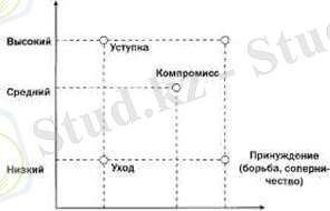К. Томас пен Р. Киллман әзірлеген жанжалды өзара әрекеттесудегі жеке тұлғаның мінез-құлық стратегиясының екі өлшемді моделі конфликттерді басқаруда кең таралды. Бұл модель қақтығысушы тараптардың өздерінің мүдделеріне және қарама-қарсы жақтың мүдделеріне бағытталуына негізделген.