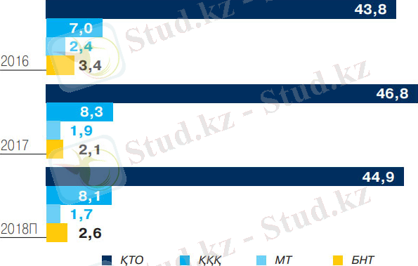 ҚTO - 5, 377 кмҚазақстан-Қытай Құбыры (ҚТО 50 %, CNODC 50 %) - 1, 759 кмМұнайТас (ҚТО 51 %, CNPC E&DC Ltd 49 %) - 449 кмМАГИСТРАЛДЫҚ МҰНАЙ ҚҰБЫРЛАРЫНЫҢ ҰЗЫНДЫҒЫН ПАЙДАЛАНУ МЕРЗІМДЕРІ БОЙЫНША ҮЛЕСТІРУ (31. 12. 2017 Ж. ЖАҒДАЙЫ БОЙЫНША), МЫҢ КМ