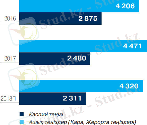 Сонымен қатар, 2018 жылы мұнайды теңіз арқылы тасымалдау көлемінің 2017 жылмен салыстырғанда 5 %-ға (320 мың тонна) азаюы күтіледі, бұл Ақтау-Баку, Махачкала-Баку бағыты бойынша кепілдендірілген көлемдер мен келісімшарттардың болмауымен түсіндіріледі.