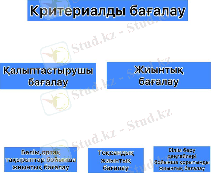 Критериалды бағалау - белгіленген критерийлер негізінде білім алушылардың нақты қол жеткізген нәтижелерін оқытудың күтілетін нәтижелерімен сәйкестендіру үдерісі