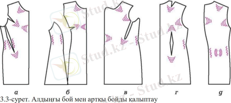 бөлігін, жауырын астында бел тұсындағы босаң жерді жия үтіктейді. Артқы бойда бүйір қиық, бедерлі қиық, бел деңгейіндегі ортаңғы қиық бөліктерін толық тегістегенге дейін созады (3. 3-сурет, г, д) .