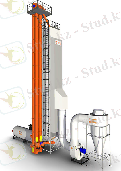 СЗШ-16. 0 стационарлық астық кептіргіш. СЗШ-16. 0 дәнді кептіргіш тағамды, дәнді және дәнді дақылдардың тұқымдық және жемдік дәндерін кептіруге арналған тазалау және кептіру кешендерінде қолданылады. Оның салқындатқыш бағандары бар екі білігі бар.