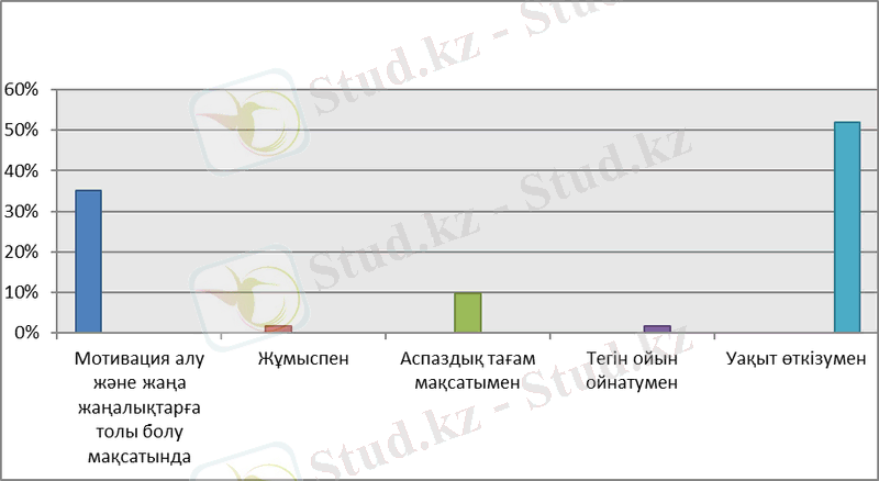 Сауалнаманың екінші негізгі сұрағы жас өспірімдердің қандай мақсатпен блогерлерді көретінін білу болды. Бұл сұраққа шамамен 3. 2% (4адам) жұмыспен және тегін ойын ойнату мақсатымен деген пікірлермен келісті. Ал, олардың жартысынан астамы, яғни 64 адам (52%) уақыт өткізумен көреді екен (2-Кестеде) .