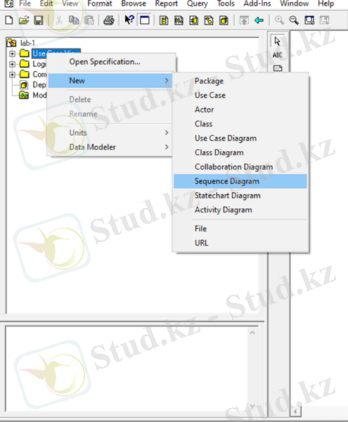 Енді, берілген логикалық бөлімшеге «New» және «Sequence Diagram» басып, жаңа диаграмманы құрамыз.