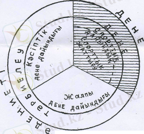 Дене тәрбиесі-жеке тұлғаның жан-жақты жетілуі және жүйелі үйлесімділікте дамуы мақсатында дене жаттығуларымен үзіліссіз шұғылданудағы саналы түрдегі қажеттілікті өз бойларында қалыптастыру және дене мәдениеті бойынша арнайы білімдерді меңгерту, дене қабілеті мүмкіндіктерінің дамуын басқару (тәрбиелеу), қозғалыс әрекеттерін оқытып, үйрету болып табылады. (1-сурет) .