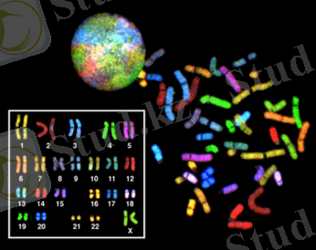 Суретте әртүрлі жұп гомологты хромосомалардың сыртқы пішіндері көрсетілген. Мұнда адамның митоз кезіндегі хромосомалары көрсетілген. Хромосомалар жеке жеке кесіліп, ары қарай пішіні мен көлемі бойынша парақта көрсетілген. Мұндай сурет кариотип деп аталады. Адамда 2n, яғни хромосома саны 46-ға тең және олардың көлемі мен центромераларының орналасуы алуан түрлі. Сондай ақ бұл кариотипте 46 хромосоманың әр қайсысы екі паралелді орналасқан және ортақ центромерасы бар жұп хроматидадан тұратынын көреміз. Егер де осы бір-біріне ұқсас хроматидалар бөлінетін болса, нәтижесінде екі жаңа жасуша пайда болады.