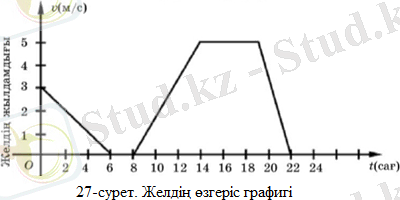 14-есеп. 27-суретте 21 наурыз күні соққан желдің жылдамдығының тәулік бойындағы өзгеріс графигі кескінделген.