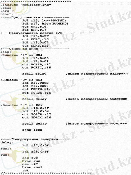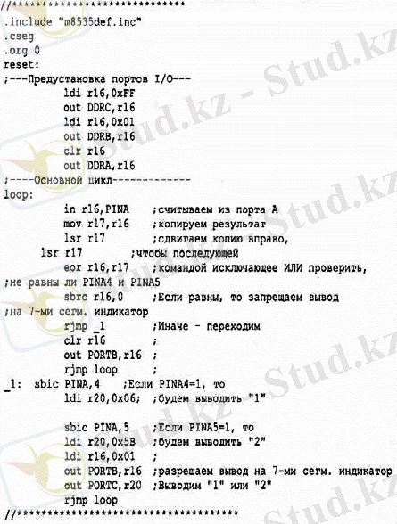 Курстық жұмыс: AVR микроконтроллерлерін ассемблерде бағдарламалау және ATmega8535 енгізу/шығару порттары, жеті сегментті индикация және таймер-есептегіштерін зерттеу
