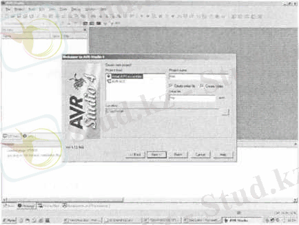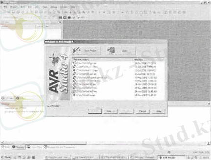 Бағдарлама енгізу үшін AVR Studio қолданылады. AVR Studio бағдарламасын қосыңыз. Жаңа жоба бағдарлама немесе бар жобаны ашу диалог терезесі пайда болады (1 сурет)
