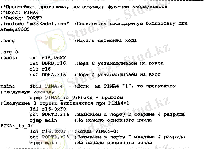 4. АССЕМБЛЕРДЕ БАҒДАРЛАМАЛАУ Жұмыс №1. Ассемблерде AVR микроконтроллерін бағдарламалау ерекшеліктеріЖұмыстың мақсаты: