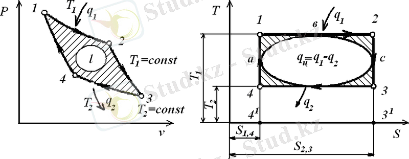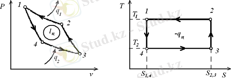 -ге дейін жоғарылап, 4-1 сызығымен адиабаттық сығылу нәтижесінде алғашқы күйІна қайтып оралады.