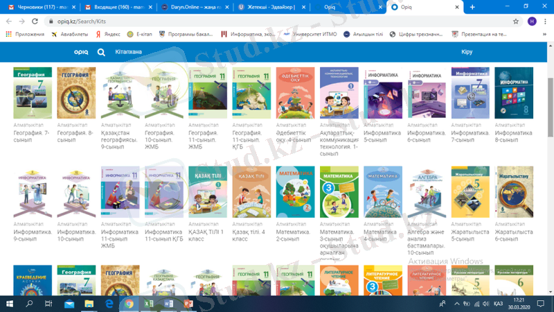 - OPIQ. KZ -Отандықэлектрондық оқулықтар платформасы. Бүгінде порталда бірнеше баспаның («Aлматыкітап баспасы», «АрманПВ» және «Edu Stream») қазақ және орыс тілдеріндегі 75 оқулығы пайдалануға дайын (4-сурет) .