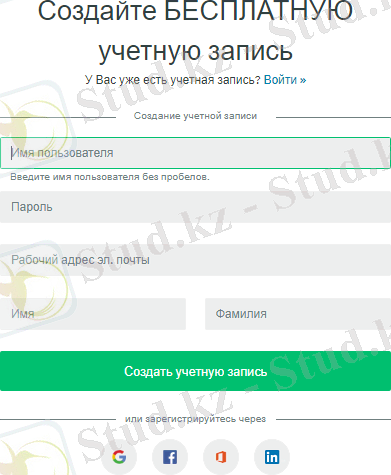 Сервиспен жұмыс жасау үшін, әдеттегідей тіркелуден өту қажет (89-сурет) . Тіркелуді Facebook, Google, Linkedln, Microsoft аккаунттары арқылы жасауға болады.