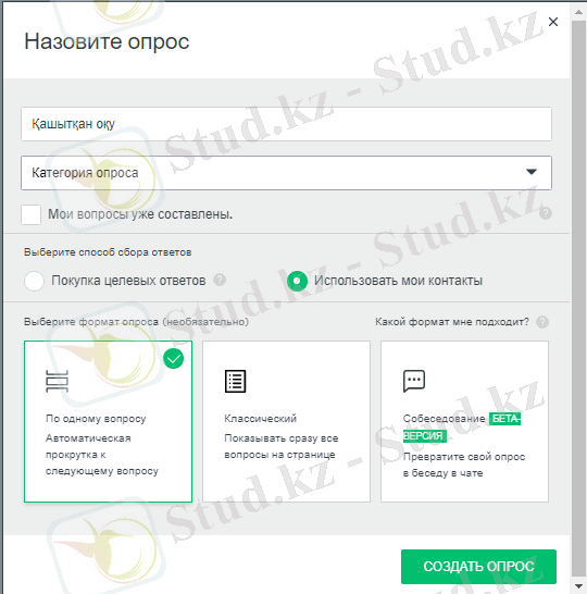 100-сурет. Жаңа сауалнама құрудың алғашқы қадамы.