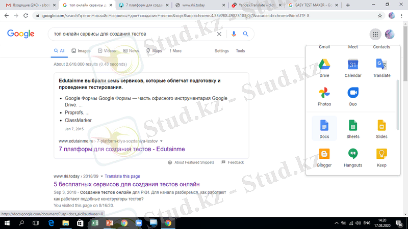 Тест даярлауға арналған программалар, веб-сервистер