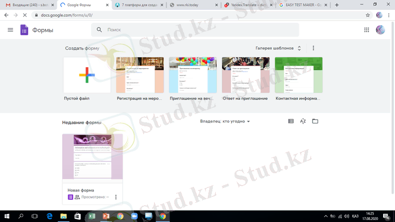 106-сурет . Google Формалар қатарын дайын үлгілерді таңдау.