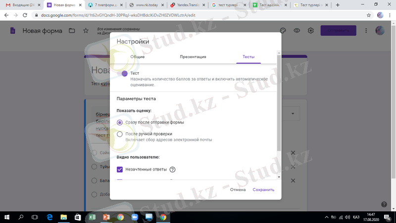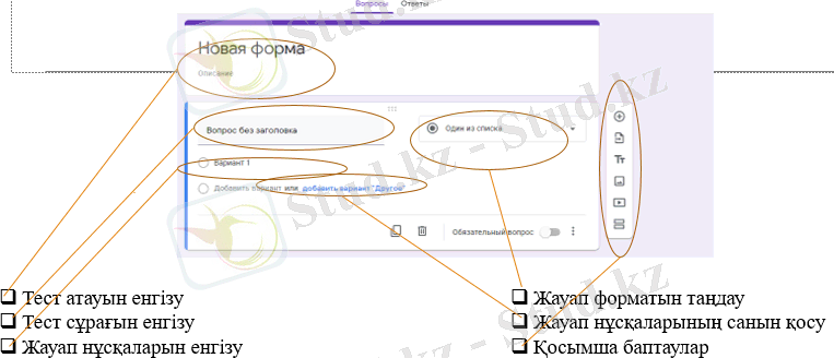 Мақсаты: Қашықтан оқыту барысында тест даярлау әдістерімен таныстыру, тест жасауға арналған сервис түрлерімен жұмыс істеу.