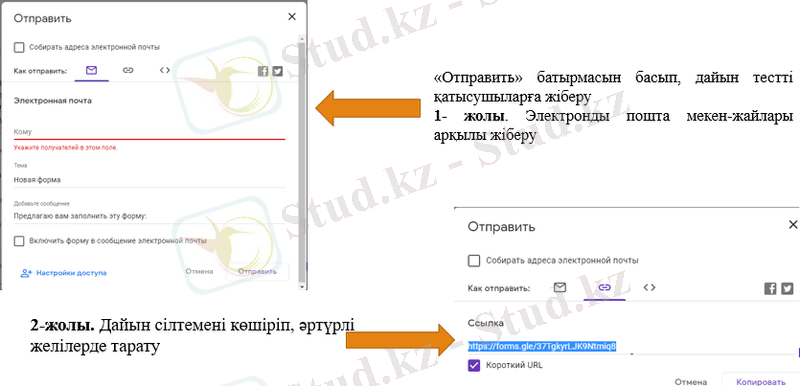 104-сурет. Тест сілтемесін почта арқылы немесе хабарлама арқылы жіберу.