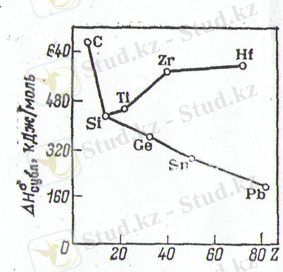 Сурет 1. Элементтің реттік нөмеріне IV топтағы элементтік заттар сублимизациясының стандартты энтальпия тәуелділігі