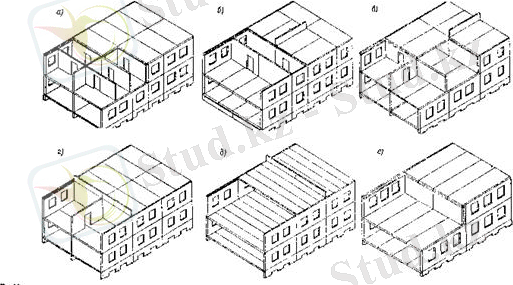 Ең көп таралған қаңқасыз жүйенің ғимараттарын жобалау кезінде келесі бес дизайн схемасы қолданылады (сурет. 3. 6) :