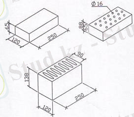 Кірпіш өлшемдері 120х65х250мм, 120×88×250 мм, 120×138×250 мм болады. Кірпіштің 120х65мм, 120х88мм беті көлденең беті деп аталады.