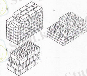 а- сазды кірпіш; б-қуысты кірпіш; в- қаптағыш кірпіш.