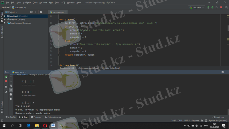 Python тілінде крестик пен нолик ойынын бағдарламалау