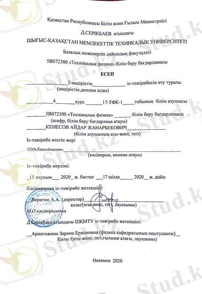 ТехноАналит ЖШС-тегі SRV-1 рентген-флуоресцентті спектрометрлерімен өндірістік іс-тәжірибе және спектрлік талдау әдістері