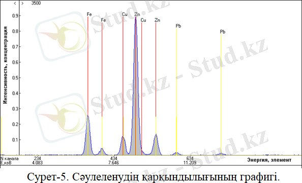 Тіркелген сәуленің энергиясы элементтің атомдарының санымен байланысты және (шыңы биіктігі талдау өлшенеді) сәулелену қарқындылығы концентрациясына пропорционал (аналитикалық атом радиациялық стандарттың спектрінде шыңдары сипатталады) қатты энергетикалық арқалық флуоресценция концентрациясына пропорционал.
