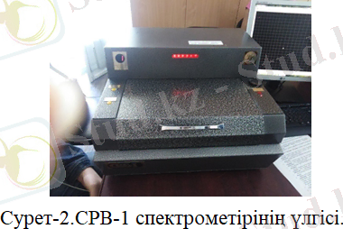 СРВ-1В модификациялы спектрометрі идентификациялау үшін үздік, сұйық және ұнтақ материалдық сапалық және сандық химиялық және сандық (массалық үлесі) табуға арналған.