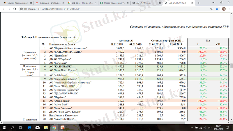 АТФБанк АҚ-ның 2017-2019 жылдардағы қаржылық көрсеткіштері, несие портфелі және өтімділік талдауы