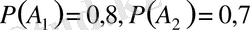 7-мысал: Екi атқыш нысанаға бiр дүркiн оқ атқан. Бiрiншi атқыштың нысанаға тигiзу ықтималдығын 0, 8, ал екiншi атқыш үшiн ықтималдығы 0, 7. Нысынаға бiр оқ тию ықтималдығын есептеңiз.