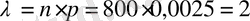 =0, 0025. бұл шамалар Пуассон жуықтап есептеу шарттарын қанағаттандырады. Демек,