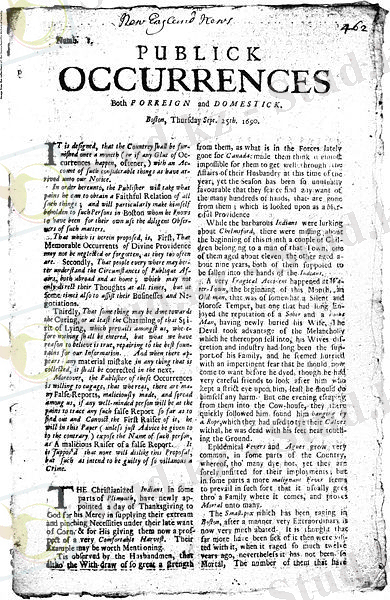 Америка Құрама Штаты- әлемнің көшбасшы мемлекеті десек артық емес. АҚШ- өзіндік ерекшелігі көп мемлекеттің бірі. Әлем бойында экономика жағынан өздерін мойындада білген. Дамушы ердерге үлгі боларлықтай, мемлекет болып есептелінеді. Сондықтан да, әлем назарын өзіне аудара білген мемлекет. Сонымен қатар, журналистика саласымен де, танымал елдердің бірі де, бірегейі. АҚШ журналистикасы- оның баспасөз беттері болсын, телевегиялық бағдарламары болсын, радио желілігі болмасын тек өзінің елінде ғана емес, әлем бойынша үздіктер қатарына кіретін мемлекет. Ең алғашқы баспасөз газеттері Батыс Еуропа елдерінен кейін, осы Америка елінде шыға бастады. АҚШ- тың ең алғашқы баспасөзі Бостон қаласында, 1690 25 қырқүйекте жылы «Паблик оккорэнсиз энд демостик» («Publick Occurrences, both Forreign and Domestick») деген атпен жарық көрген. Бұл газетті Бостон қаласынаң тұрғын Ричард Пирс текстін жазумен айналысса, ал редакторлық қызметін - бұрын Лондон қаласында газет шығарарумен айналысқан, өз маманның шебері- Бенджамин Харрис болды. Газет беті 6-10 бет шамасында шығарылған. Алайда, бұл газеттің тарихы көпке созылмай, бір саны ғана шығып үлгенген. Газеттің шығуына ағылшынның отармау үкіметі қарсы болып, артынша 1690 жылы 29 қырқүйекте жабылып қалған. Келесі газет 14 жылдан кейын жарық көрді. Яғни 1704 жылы Джон Кембеллдің бастауымен "Бостон Ньюслеттер" атты газет дүниеге келді, Бұл газеттің тарихы 15 жылға дейін созылды. Алғашқы таралымы 300 данамен шығарылып, көлемі жағынан қазіргі газеттерден сәл үлкендеу көлемде жарияланған. Газет негінен Лондындық «Флайнинг пост» газетінің көшірмесі ретінде шығып тұрған. Газеттің алғашқы беттерінде, отандық жаңалықтар емес, шетелдік жаңалықтар жарияланған. Ел ішіндегі жаңалықтардын айтарлықтай құнды ақпараттарды жаза алмаған.