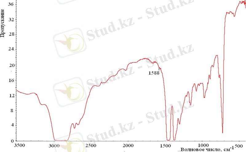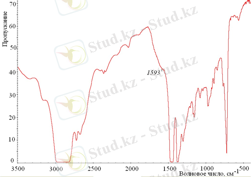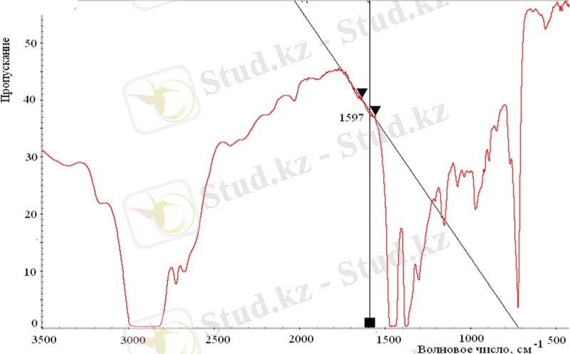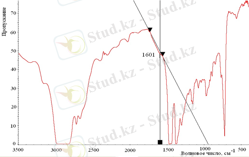 Өткізу спектрлерінің түсірілімі [3500 400 ] диапазонында жүргізілді. Спектр OMNIC программалық қамтамасыз ету көмегімен өңделді. Жолақтың максимумының биіктігі 1600±20 ( толқындық санымен тіркелді (бензол сақинасындағы көміртек-көміртек байланыстарының тербелісіне сәйкес келеді) .