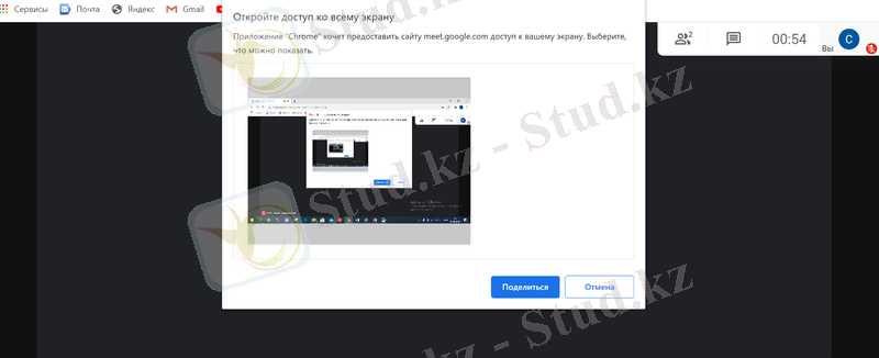 13. Өз экраныңды көрсету үшін «Поделиться» батырмасын басамыз.