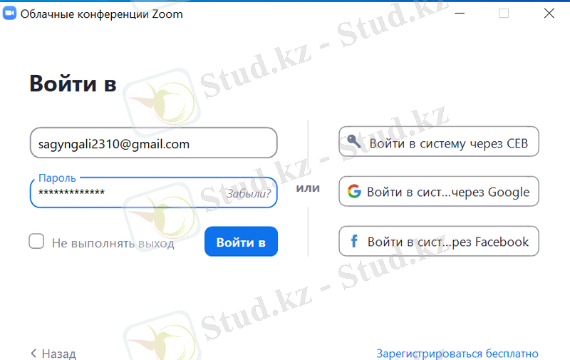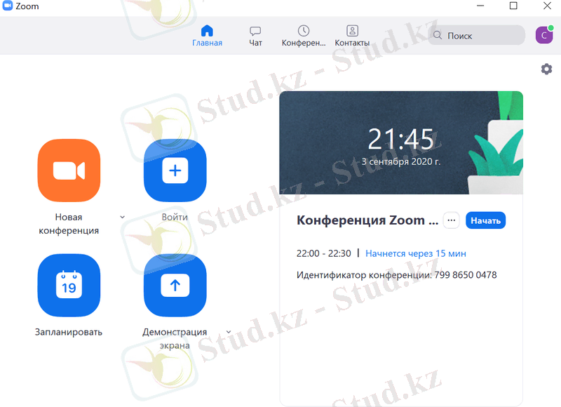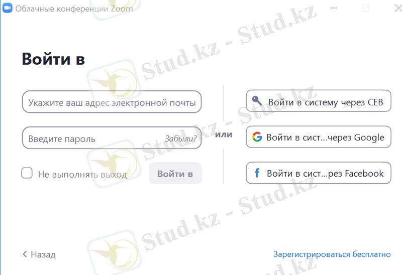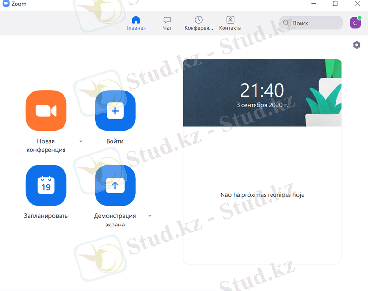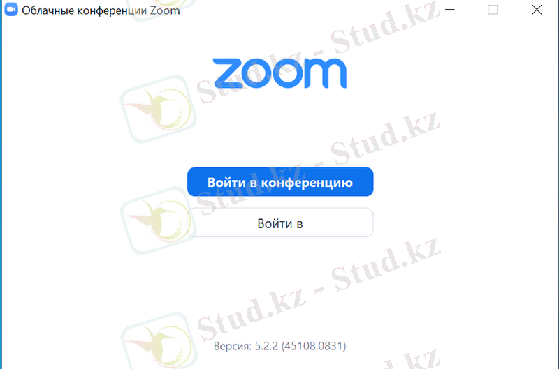2. Zoom қосымшамыз ашылды! Келесі кезекте біз Zoom-ға тіркелуіміз керек (Ол үшін «Войти в» батырмасын басу қажет)