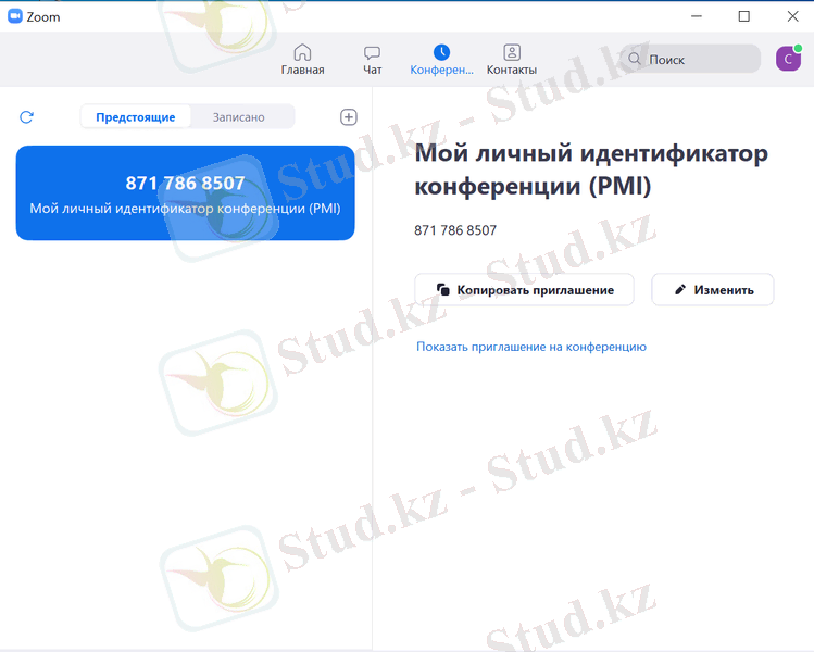 7. Конференцияға қатысушыларды шақыру үшін (Идентификаторлық номермен құпия сөзді немесе шақыру сілтемесін жіберу керек)