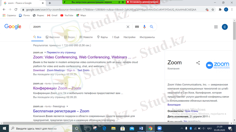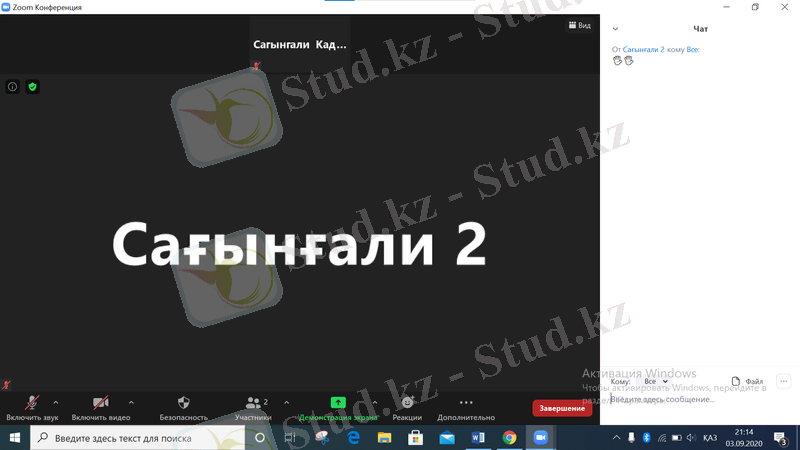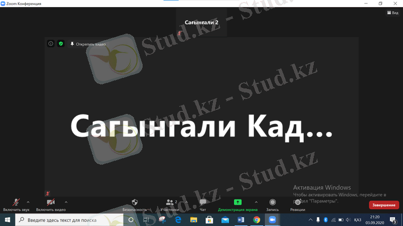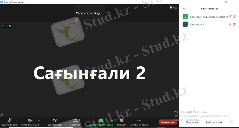 17. «Демонстрация экрана» батырмасы арқылы экранымызды қатысушыларға көрсете аламыз.
