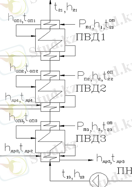 Сурет 3 - Жоғары қысымды қыздырғыштардың есептеу схемасы.
